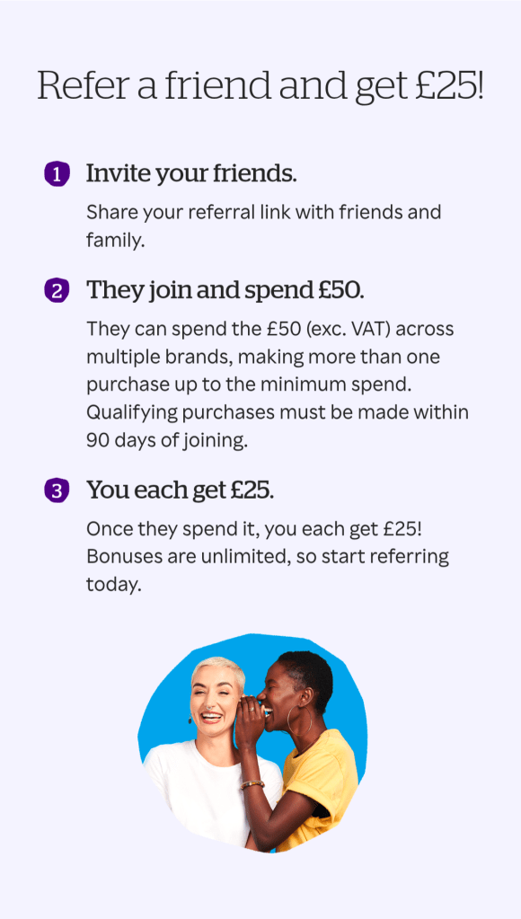 Get a £25 bonus with Rakuten.com when you use the referral link below and spend £50 within 90 days.