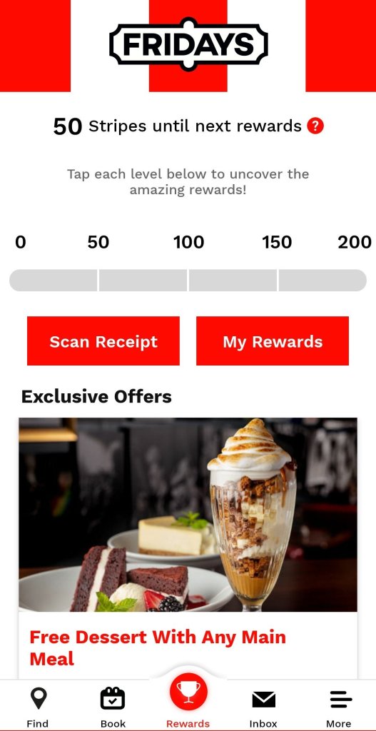 The TGI Friday App allows you to book a table and earn rewards which you can redeem in TGI Friday restaurants.
